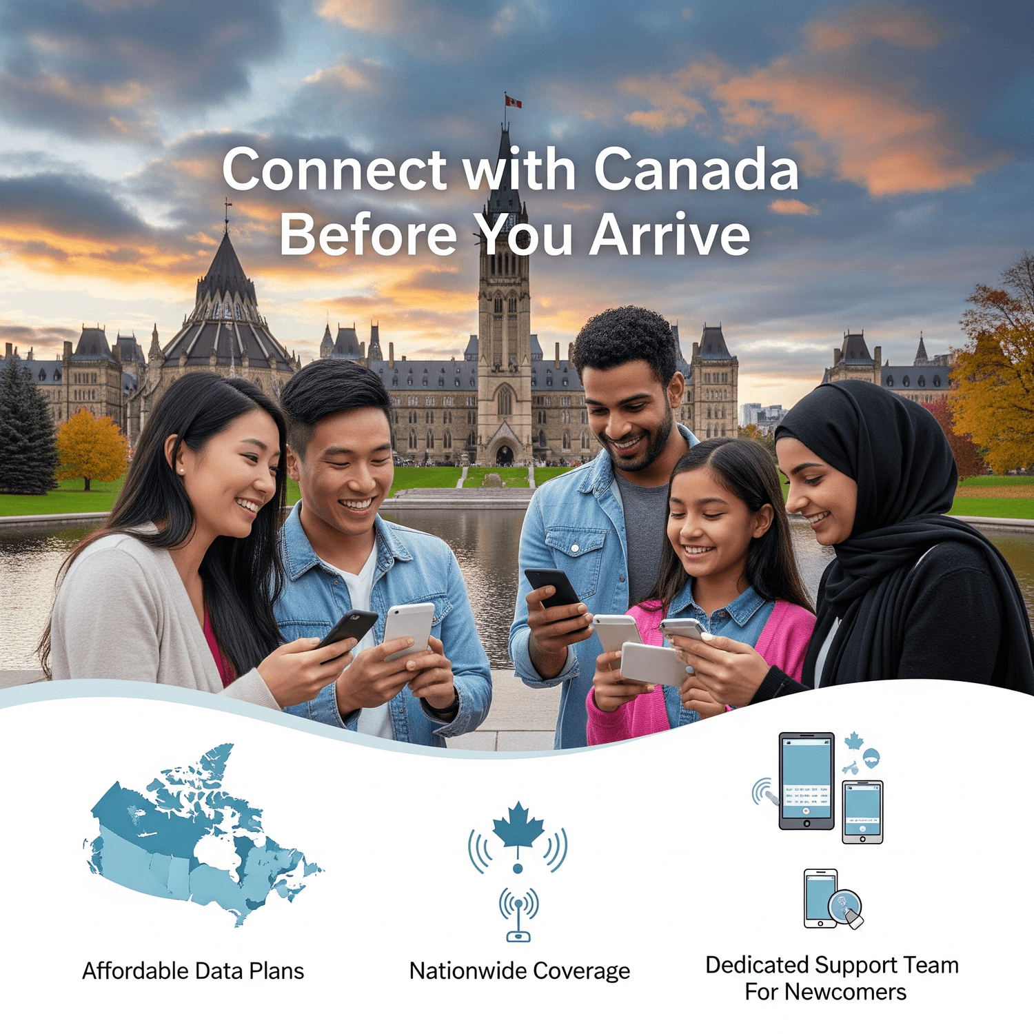Welcome to Canada! We're excited to help you get connected.